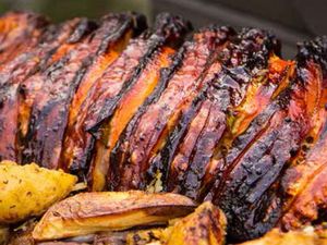 Ist ein Drehspieß an Ihrem Grill verbaut, können Sie diesen natürlich auch verwenden. So macht sich der »Flattermann« dann quasi von ganz alleine.